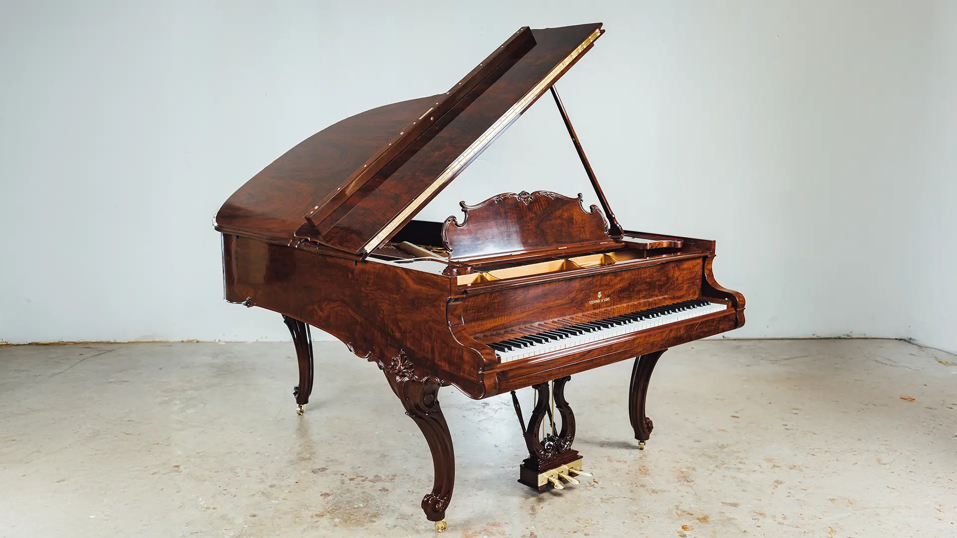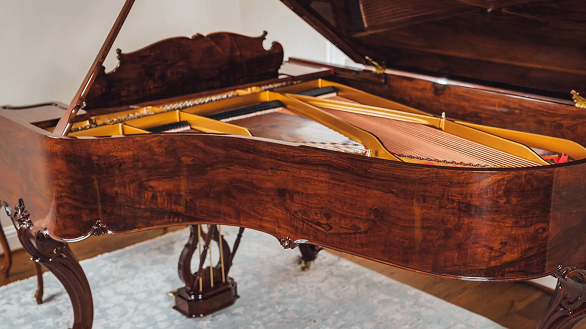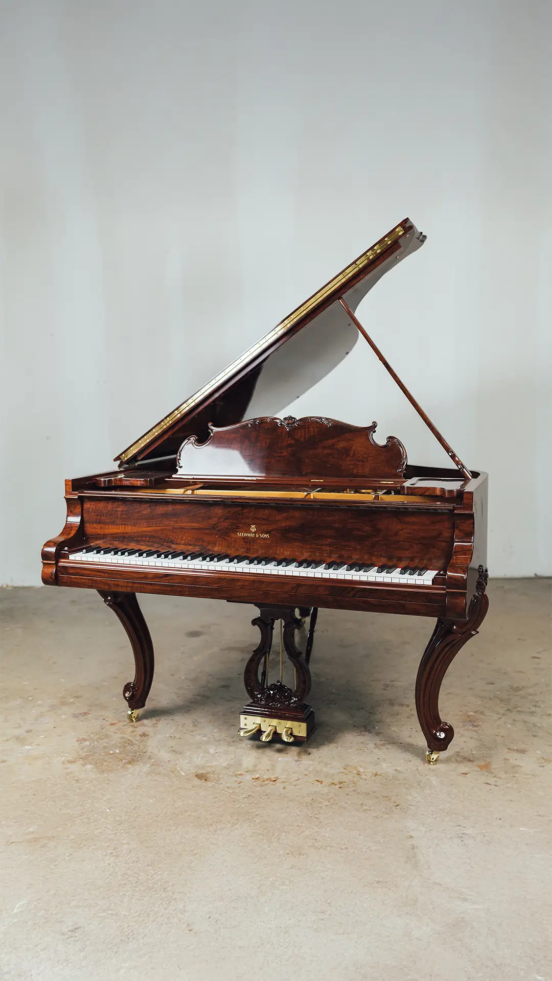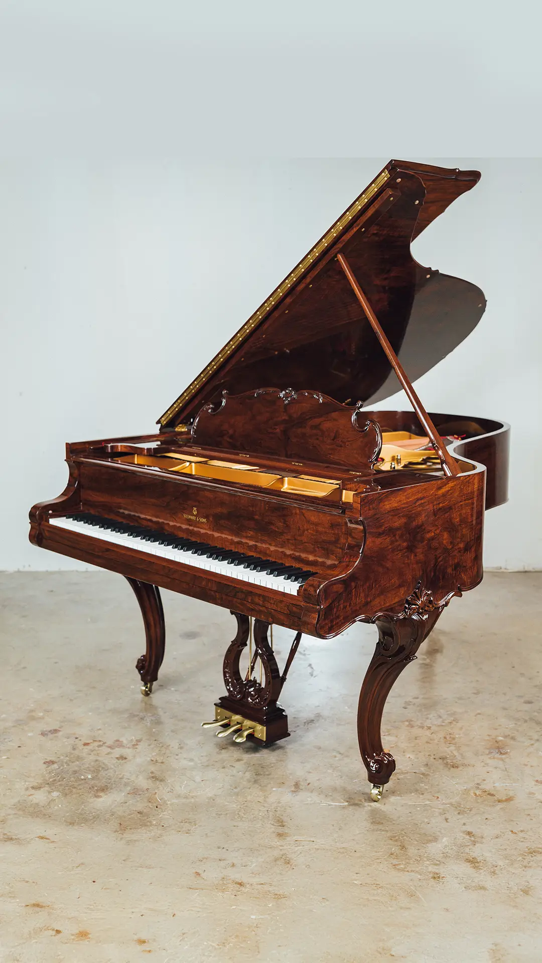 The 1914 Steinway & Sons Model A Hamburg Louis XV Grand Piano has been carefully disassembled, repaired, and reassembled by our team. We inspected and fixed the soundboard, pinblock, strings, and action, then fine-tuned the instrument for optimal sound. The soundboard and iron plate were refinished, damper felts and key felts replaced, and new back checks, hammers, shanks, and flanges installed.