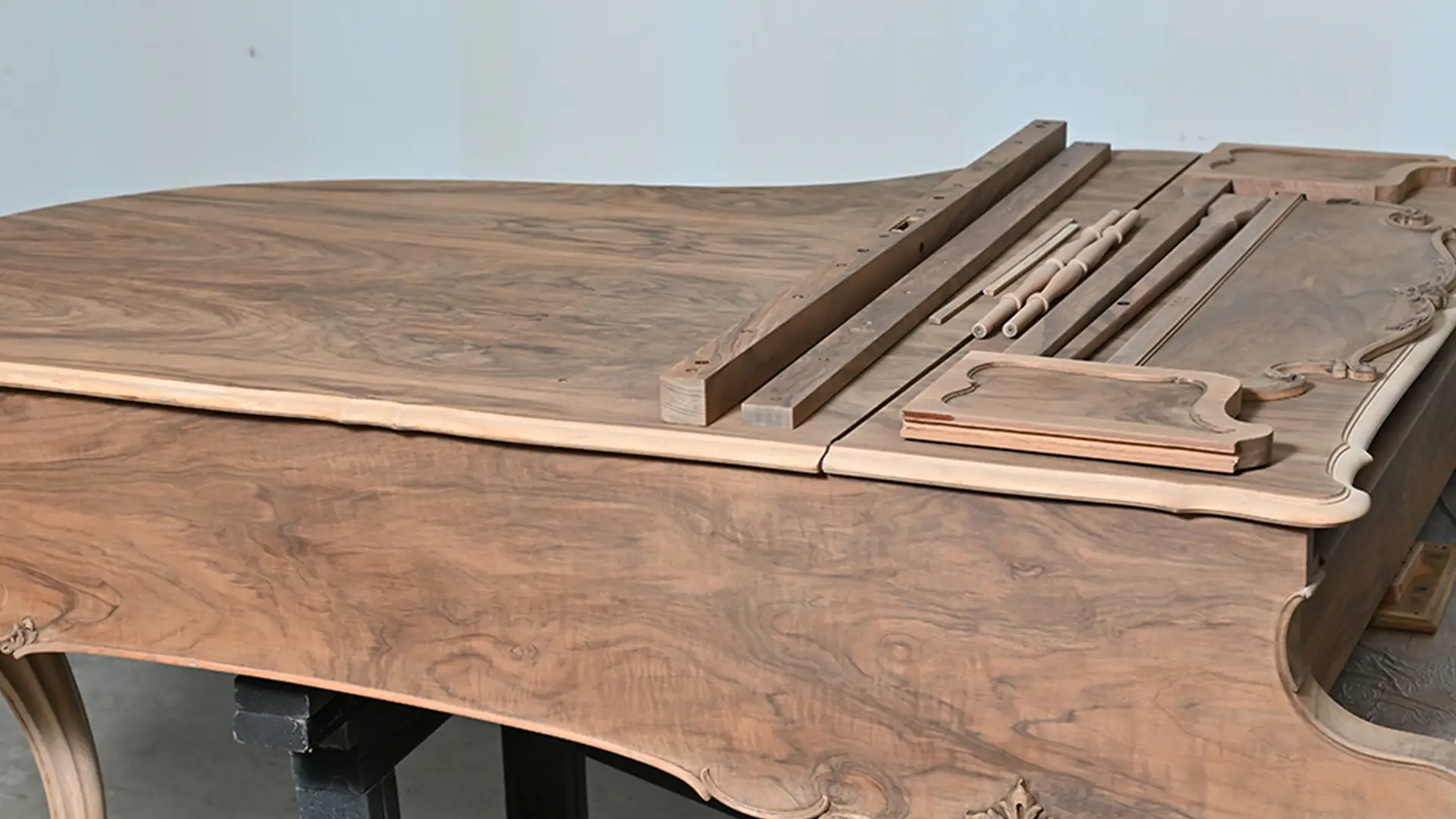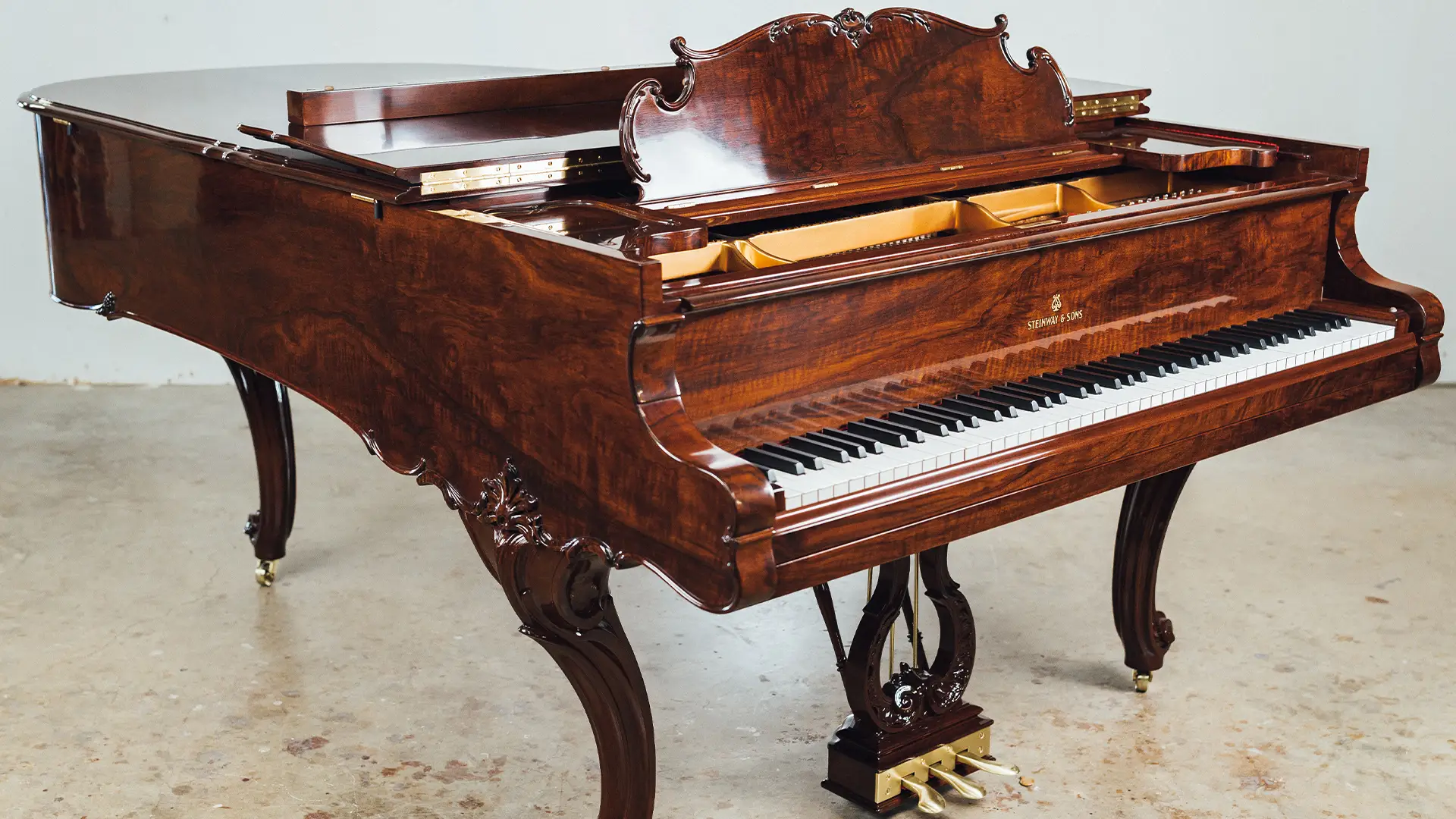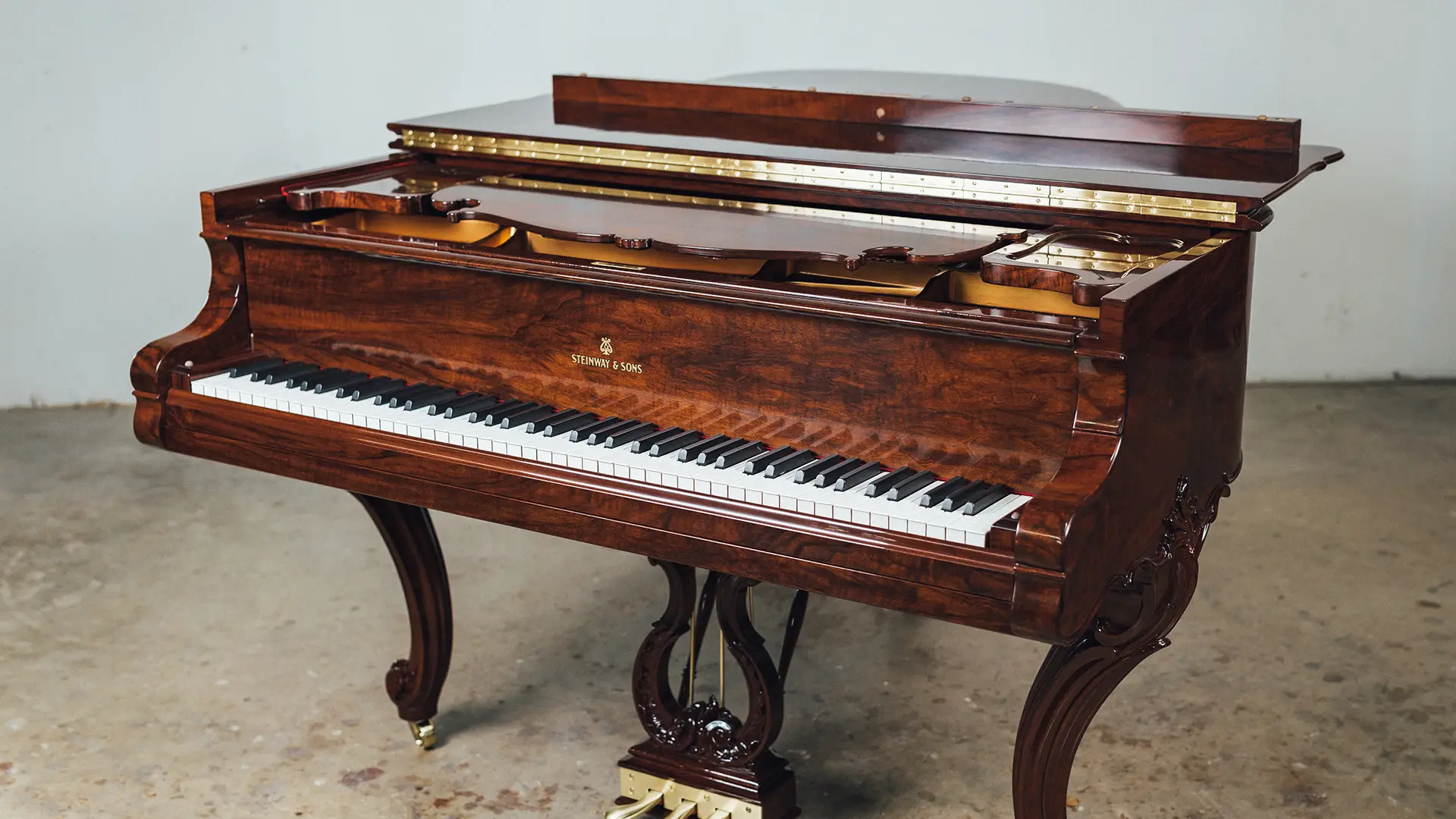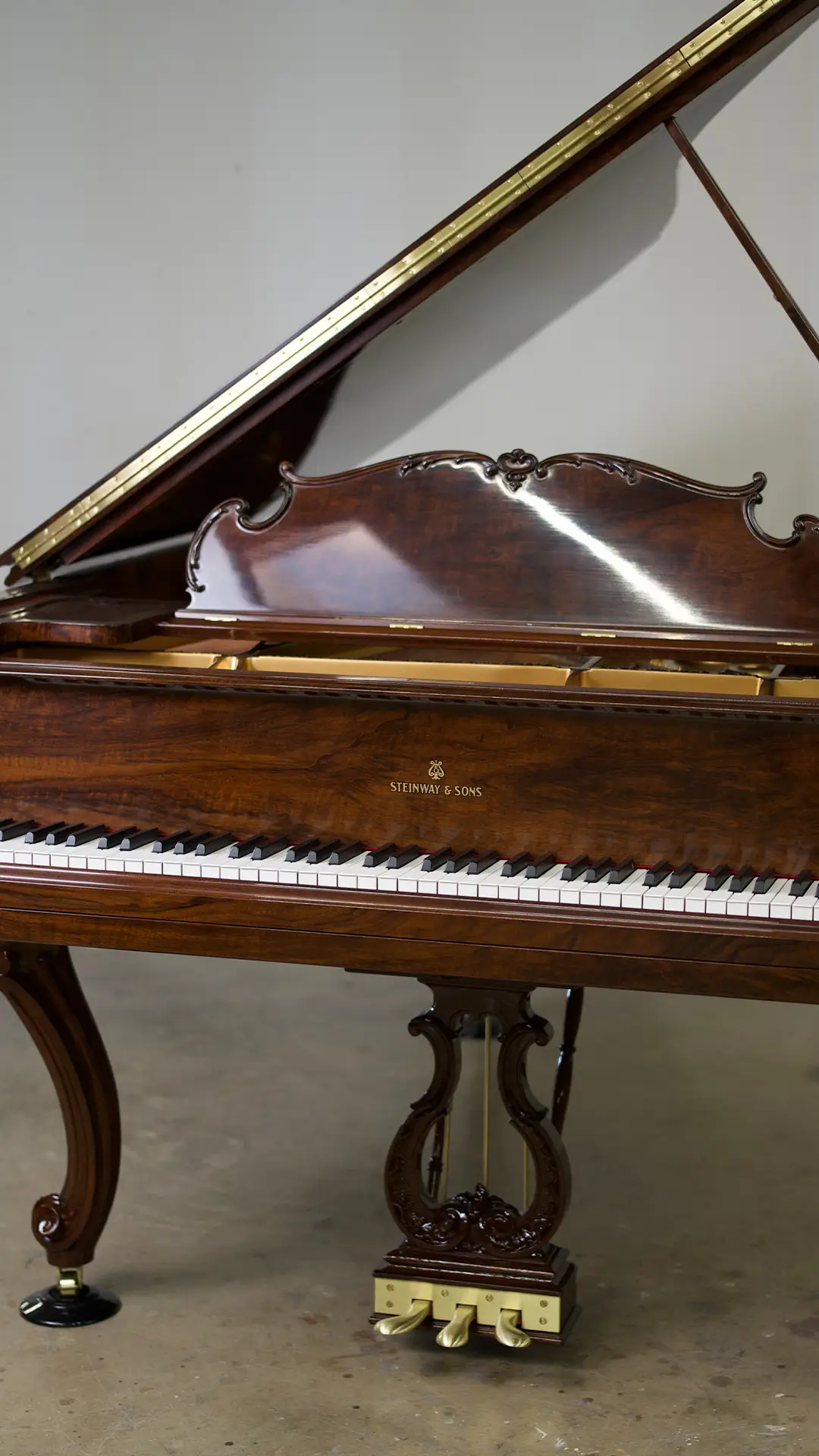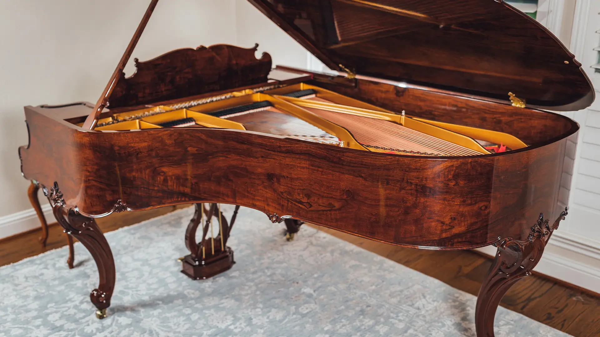 The 1914 Steinway & Sons Model A Hamburg Louis XV Grand Piano has been carefully disassembled, repaired, and reassembled by our team. We inspected and fixed the soundboard, pinblock, strings, and action, then fine-tuned the instrument for optimal sound. The soundboard and iron plate were refinished, damper felts and key felts replaced, and new back checks, hammers, shanks, and flanges installed.