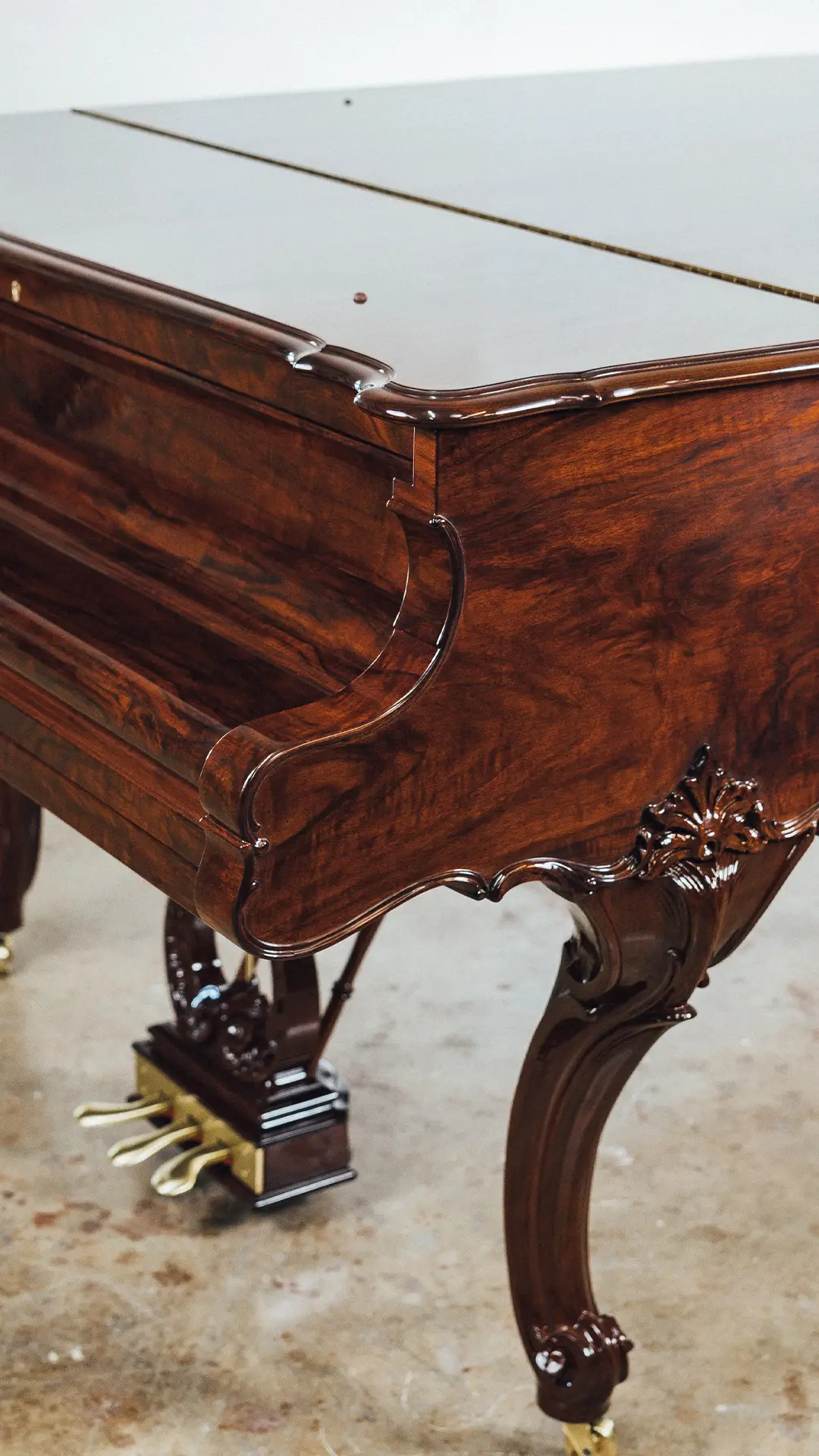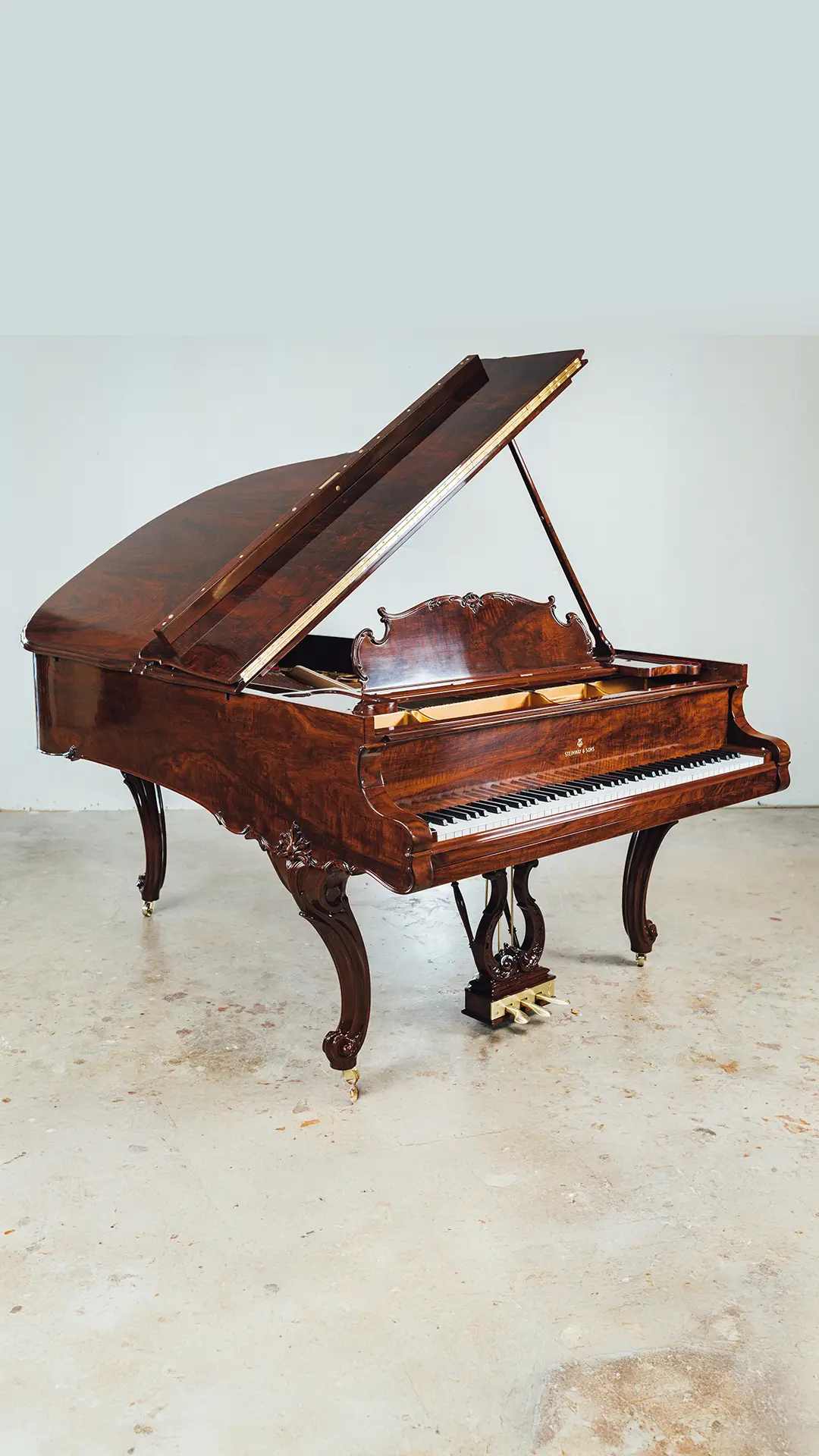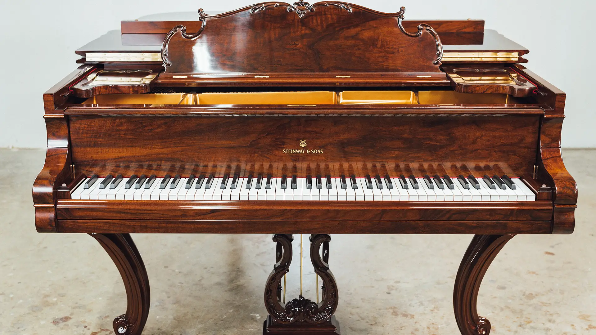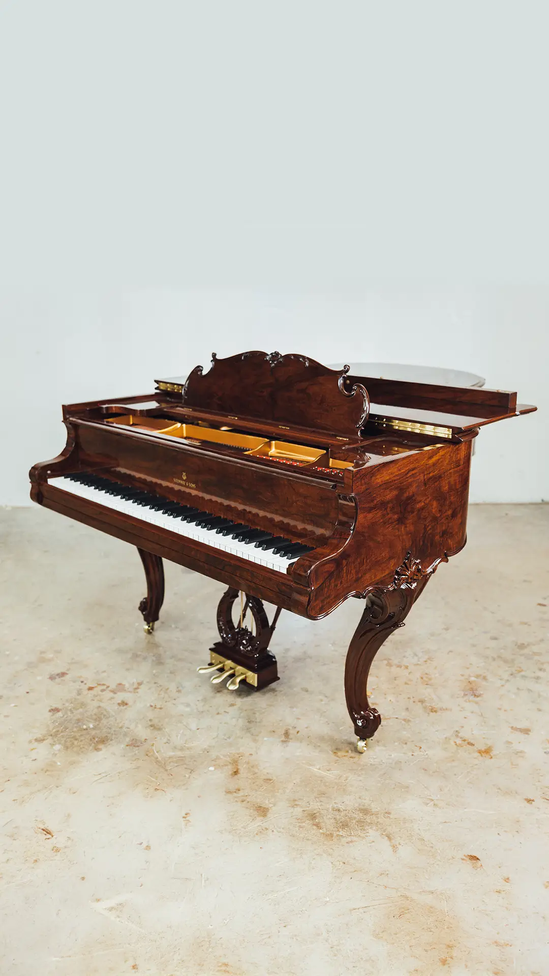 The 1914 Steinway & Sons Model A Hamburg Louis XV Grand Piano has been carefully disassembled, repaired, and reassembled by our team. We inspected and fixed the soundboard, pinblock, strings, and action, then fine-tuned the instrument for optimal sound. The soundboard and iron plate were refinished, damper felts and key felts replaced, and new back checks, hammers, shanks, and flanges installed.